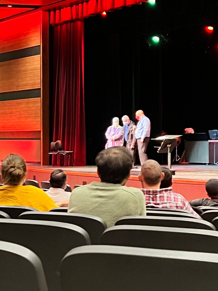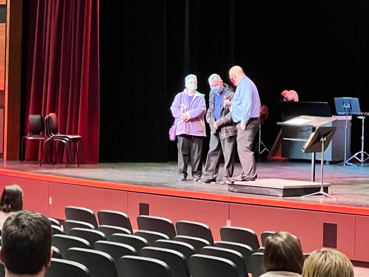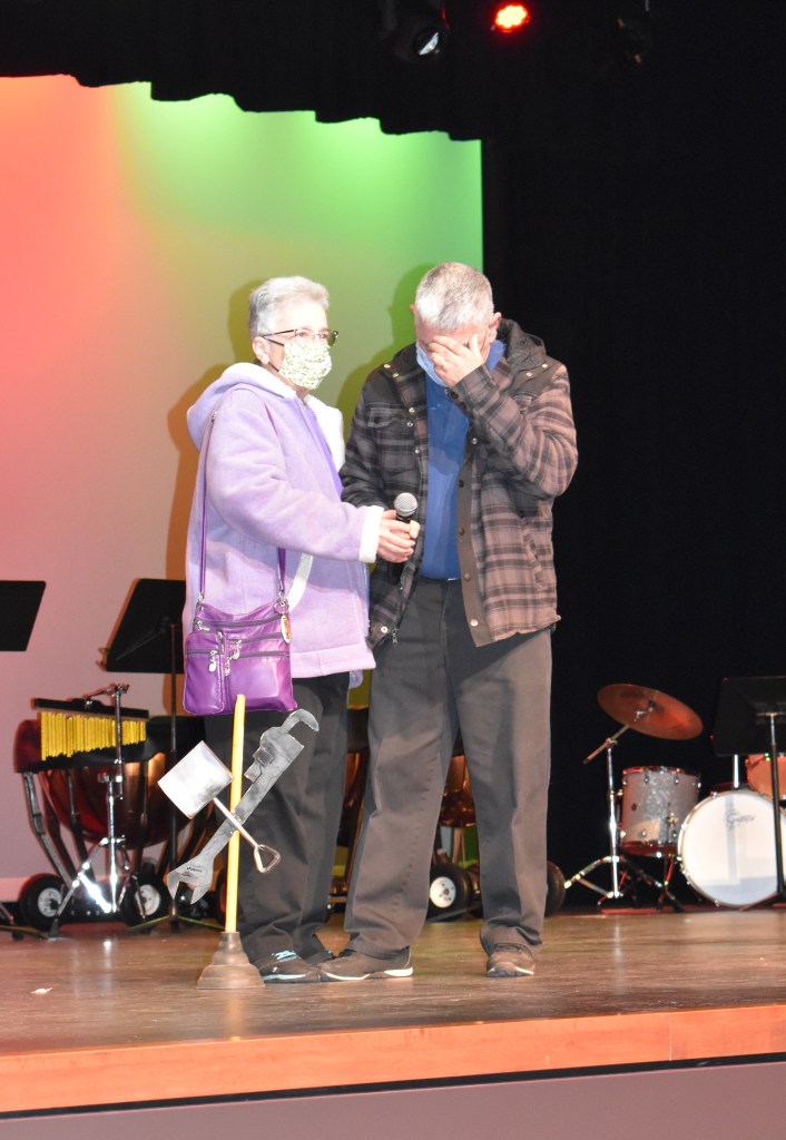 SANFORD, Maine — An unsuspecting Louis Trott walks into the Performing Arts Center from stage right. He’s following Principal Matt Petermann and Trott’s lovely wife, Clara, is not far behind him. As he steps into the light, the crowd of SHS and SRTC teachers and staff erupt in a standing ovation. Hoots and hollers, whistles and cheers, smiles – and even some tears – fill the room.