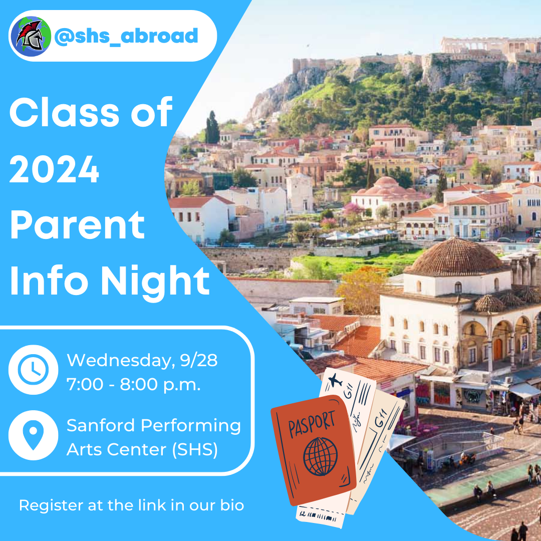 The Class of 2024 will have the opportunity to enroll in a trip to Greece in the Spring of 2024. An informational meeting for parents and students was held on Wednesday, Sept. 28 at 7 p.m. in the Sanford Performing Arts Center (SPAC).