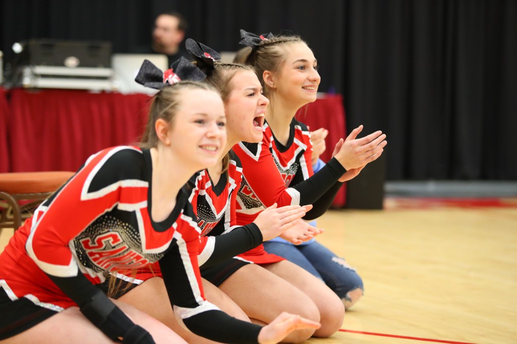 Luckily, the team was able to make better adjustments after that first competition, which meant many team members had to learn new parts of the routine and new formations, shared O’Connell, noting they’ve been working closely with SHS Athletic Training staff to work through a few tweaked ankles, pulled muscles, and the many daily sore body parts that happen daily in cheerleading.