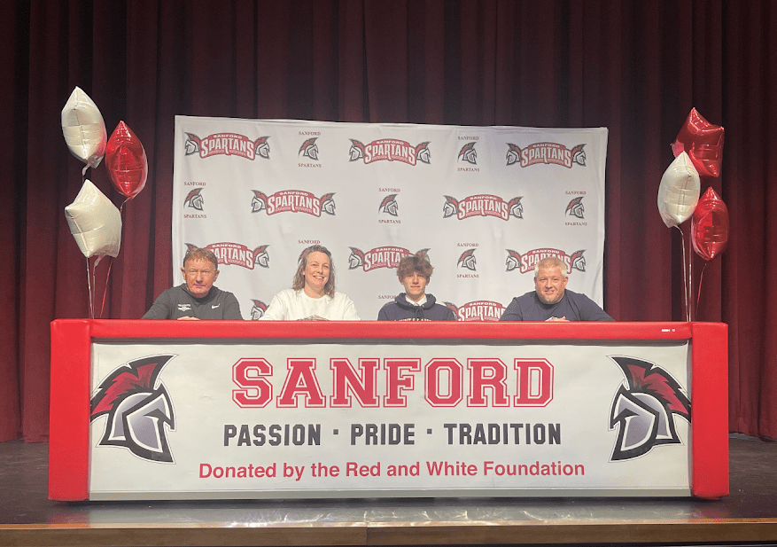 SANFORD, Maine – The Sanford Athletics Department hosted a Signing Day for senior Joel Morrison in the Performing Arts Center on Tuesday, April 11. Morrison has committed to play Division 1 soccer at Mount St Mary’s in Emmitsburg, M.D. in the fall.