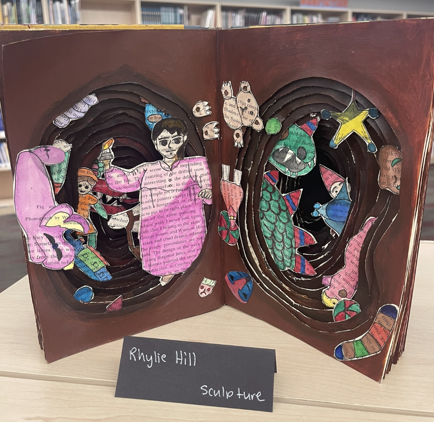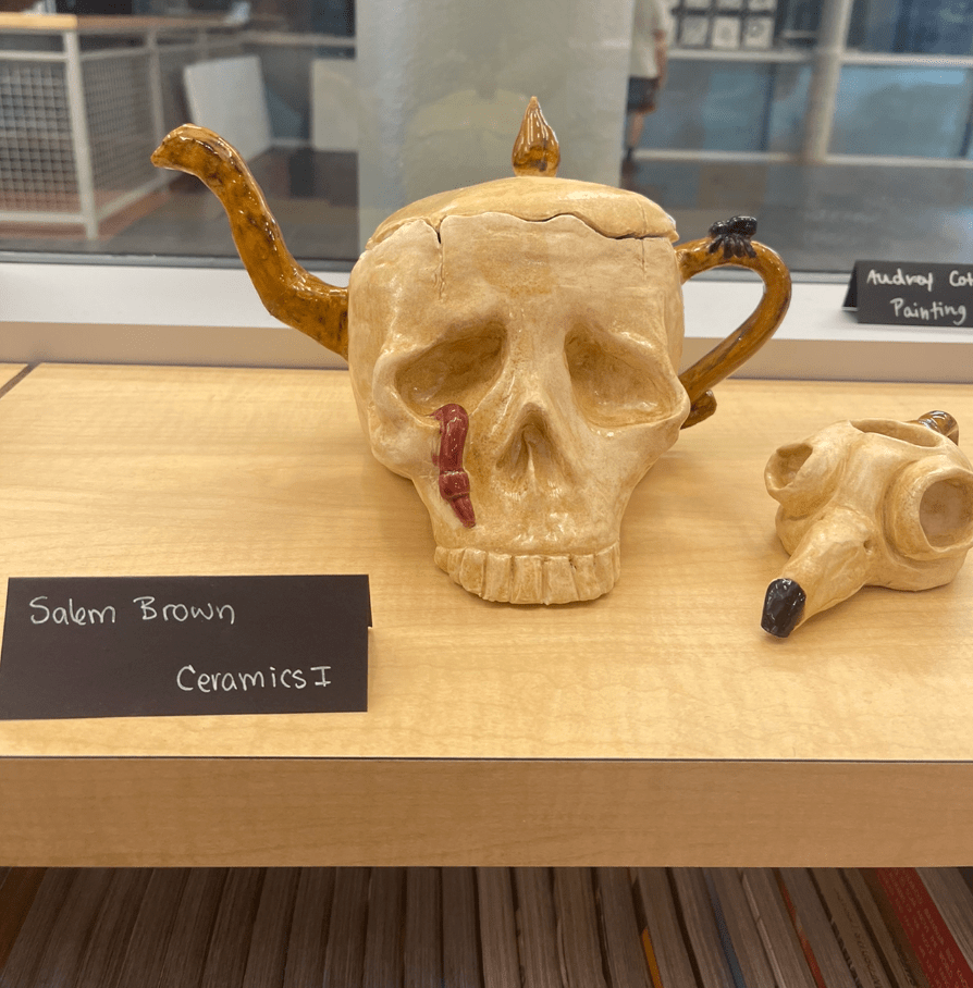 Art teacher Ms. Monroe shared, “I love seeing all of the work together. It’s fun to see projects that have been done in the same class but in different semesters displayed together and it’s wonderful to be in person again for an art show, because we haven’t had this in a while.”