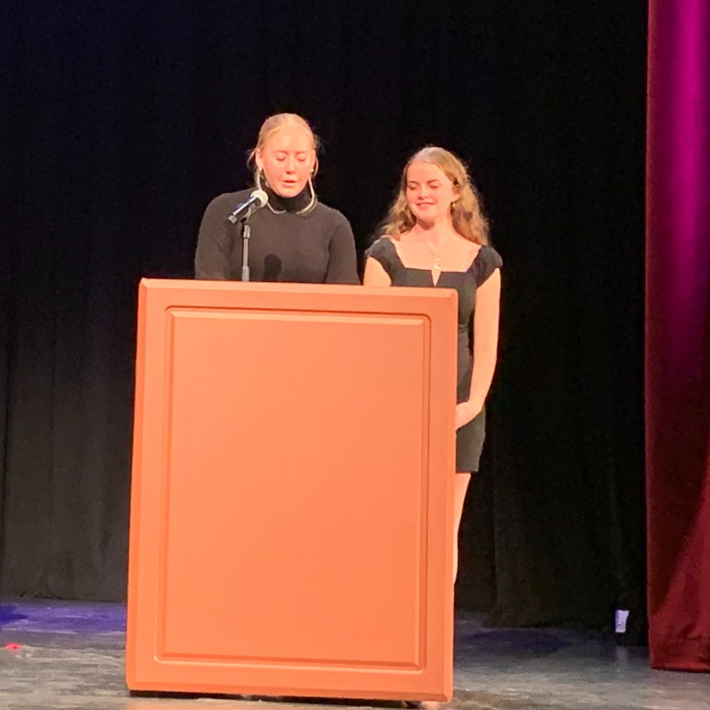The ceremony’s length differs from year to year, depending on the number of inductees, but according to the NHS President Alexandra Payeur (left) and Vice President Sydney Roux (right), it is a lengthy process.