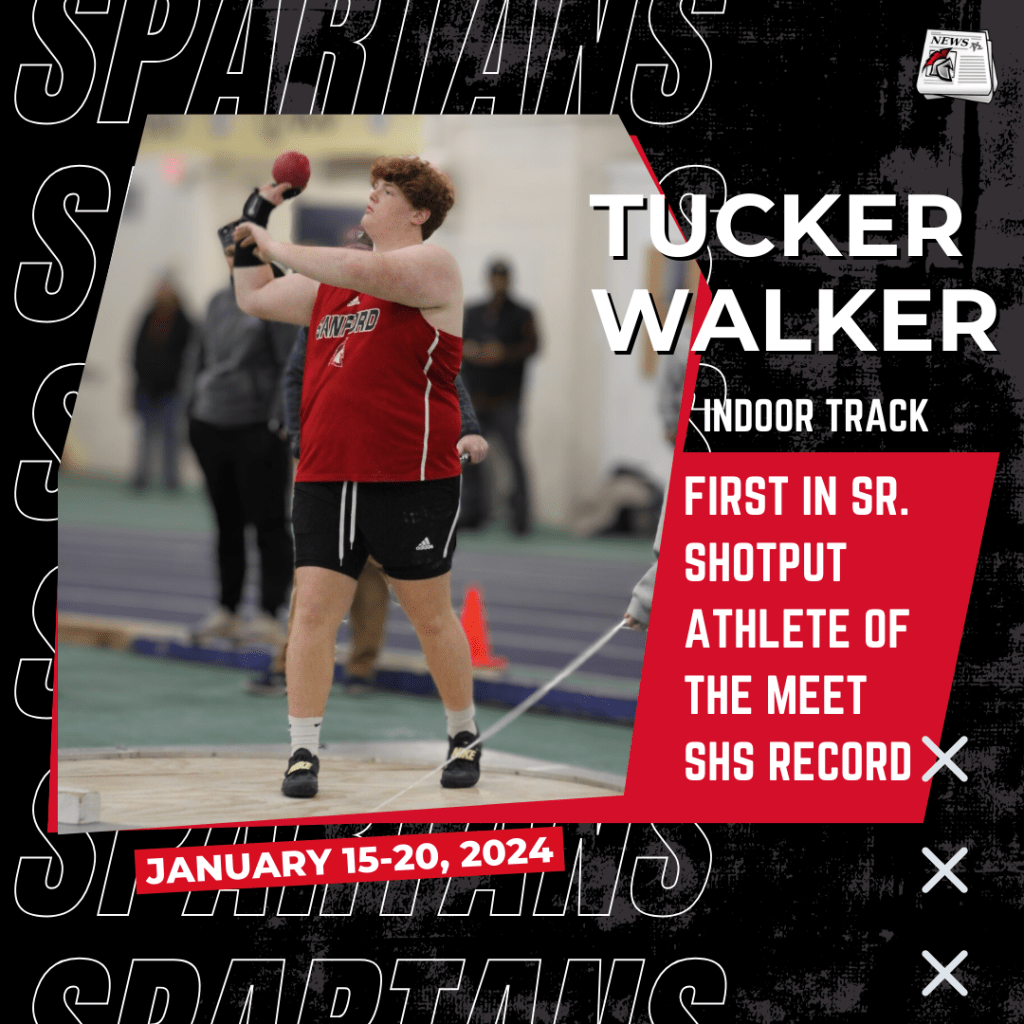 Walker, a senior on the team, has continued his impressive tenure as a Spartan Athlete. He took first in the Senior Shot Put with a throw of 48-6 and was named Athlete of the Meet. He also broke the school record earlier this season.