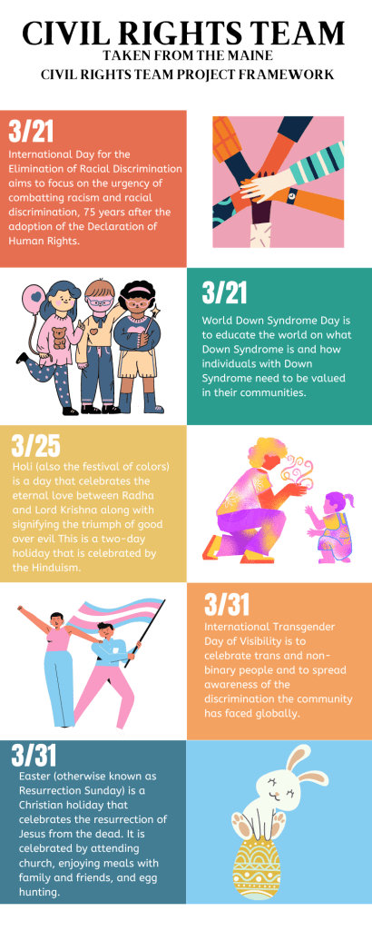In an effort to get information out on some of these topics, the Civil Rights Team has created the infographics.