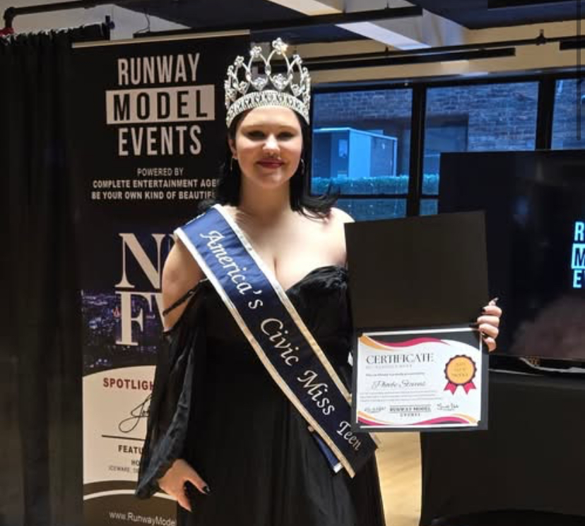SANFORD, Maine – SHS senior Phoebe Stevens was invited to New York Fashion Week in February 2025, to walk the runway for TinaMarie Holland and Garrett Steele. This was part of her prize after winning America’s Civic Miss Teen in August 2024.