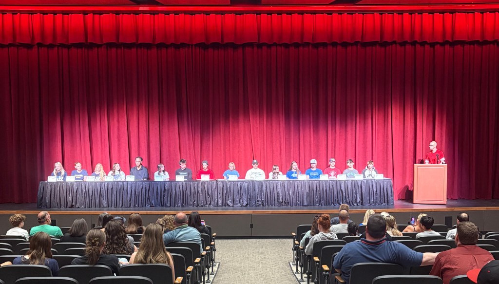SANFORD, Maine – On Wednesday, May 28, the Sanford High School Athletics Department celebrated 16 student-athletes in the Class of 2025 who have officially committed to playing a sport at the collegiate level. This means students have been recruited by and offered an official roster spot by college coaches, and have signed their intention letters.