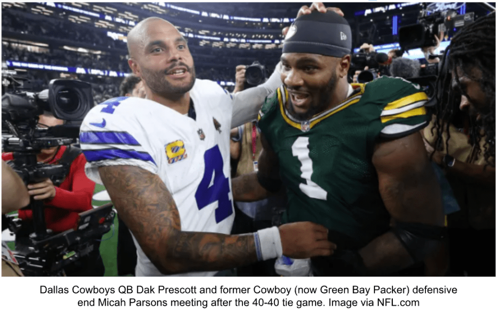 SANFORD, Maine – People have been debating for years whether the NFL should have tie games or not, but it’s never been a super big issue when the majority of the tie games were low scoring games between bad teams. On Sunday night the Cowboys and Packers dueled in a game labeled as the “Micah Parsons revenge game” following the trade involving him, but it ended in a 40-40 tie leaving more questions than answers as to who won the trade.