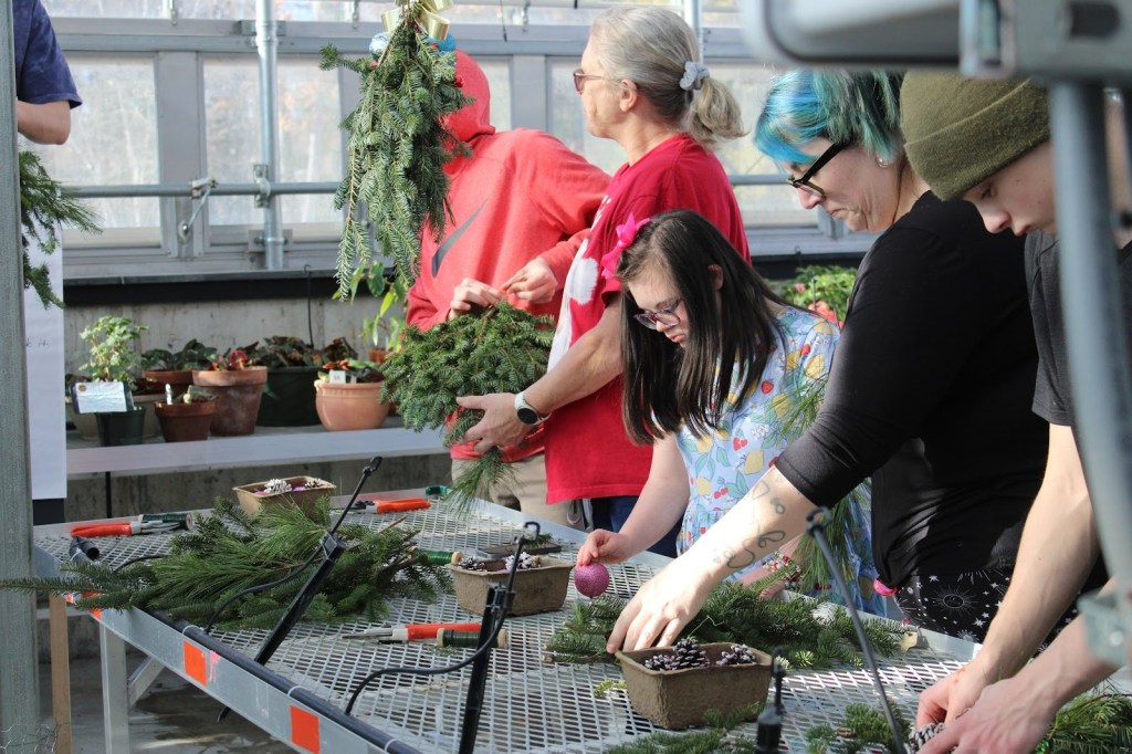 SANFORD– Students from the Pathway to Independence Programs and an outside agency, Great Bay Services, worked alongside the SRTC Agriculture Program to make decorative swag. There was laughing and hard work side by side as students turned pine branches, wire, and ornaments into handmade Christmas decorations, combining new skills to celebrate the upcoming holiday season.